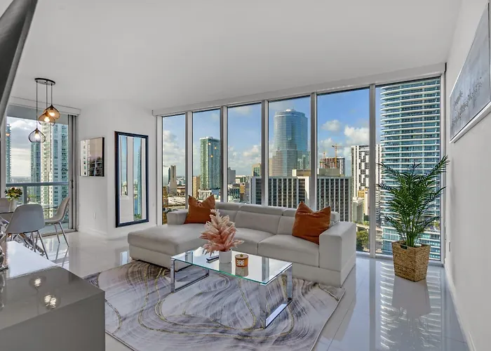 Zelfcatering faciliteiten omvatten een ingerichte keuken. 2-slaapkamer Icon Brickell 2 Bed 2Bath At W Residence is op ongeveer 10-minuten loopafstand van Brickell metrostation en binnen een paar straten van Bayfront Park treinstation. Gasten kunnen in een privézwembad duiken.